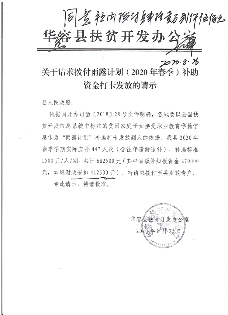 (县级)关于拨付2020年春季雨露计划补助资金的通知-41.25万