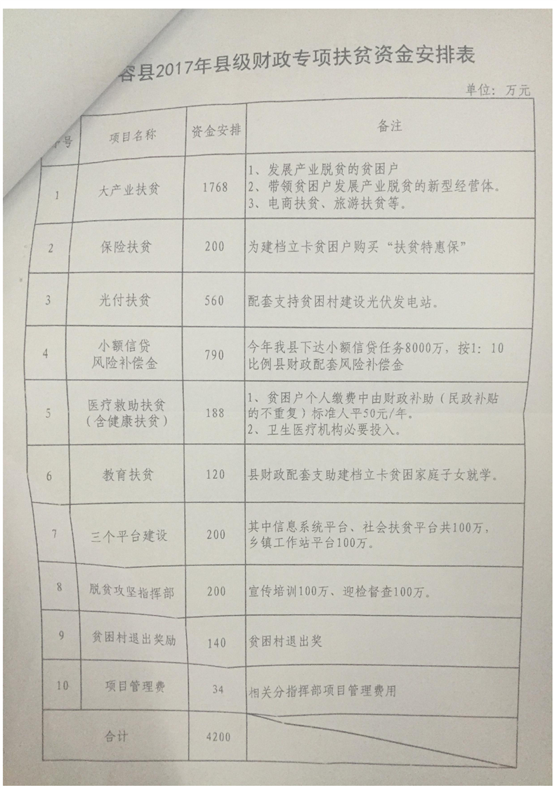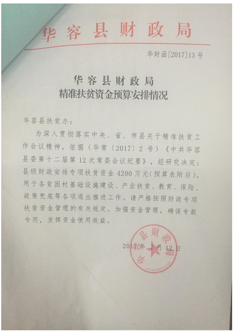 华财函[2017]13号华容县财政局精准扶贫资金预算安排情况