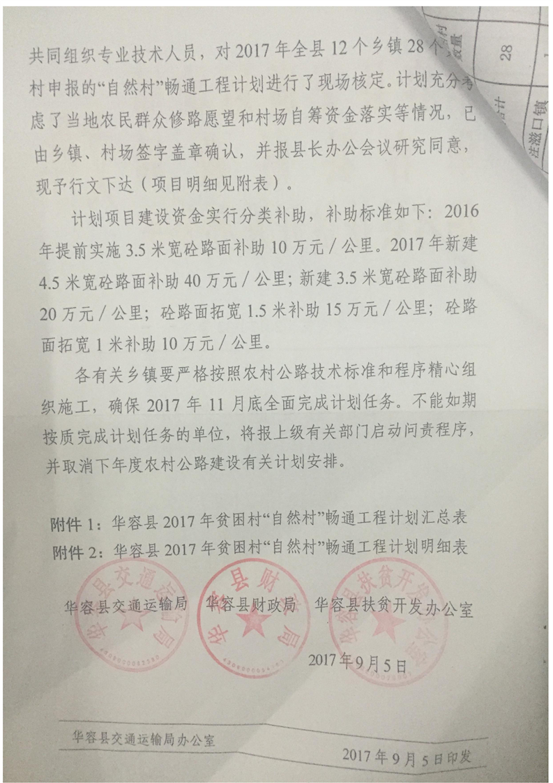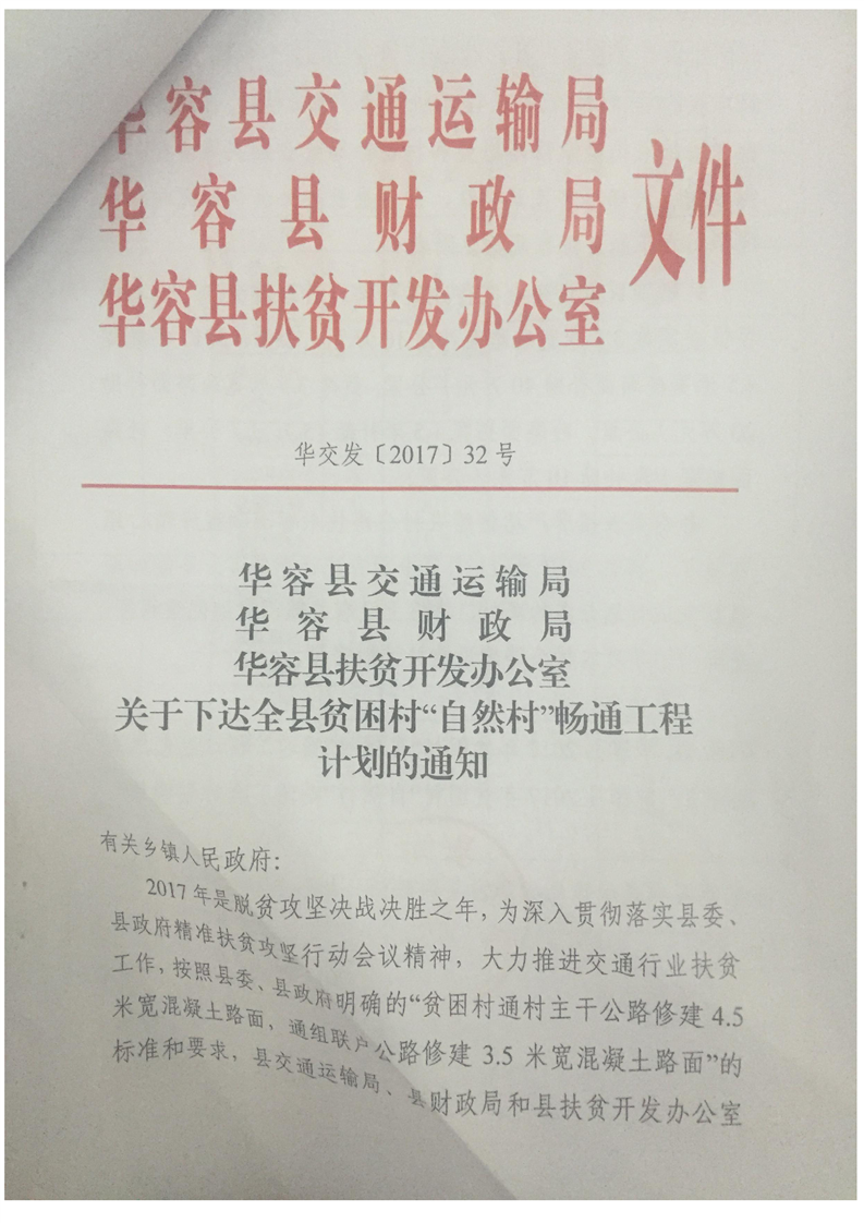 华交发[2017]32号关于下达全县贫困村“自然村”畅通工程计划的通知