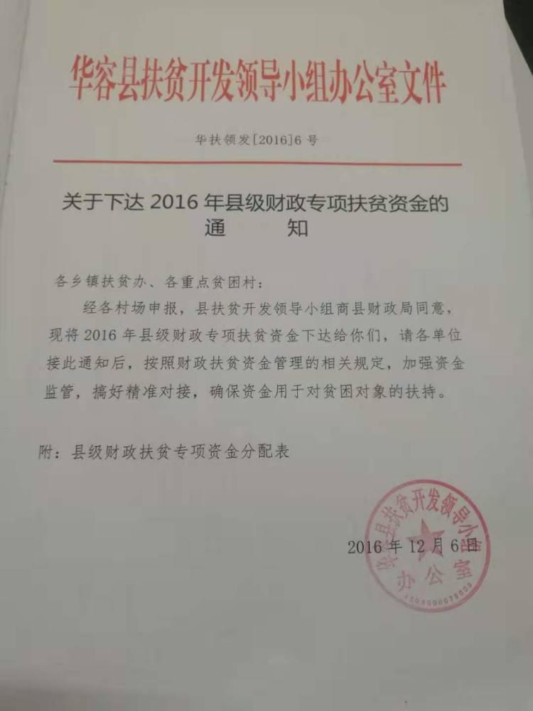关于下达2016年县级财政专项扶贫资金的通知-300万