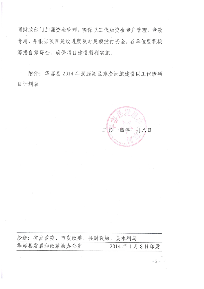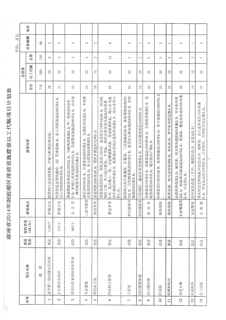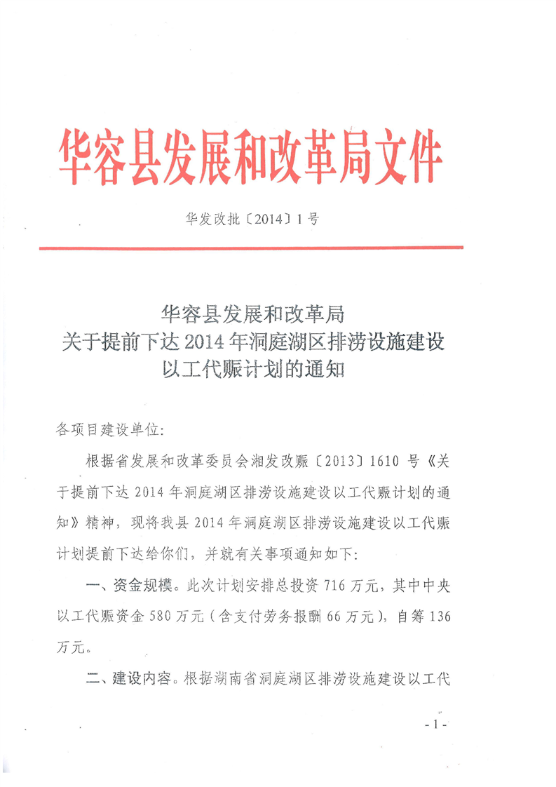 关于提前下达2014年洞庭湖区排涝建设以工代赈计划的通知-580万