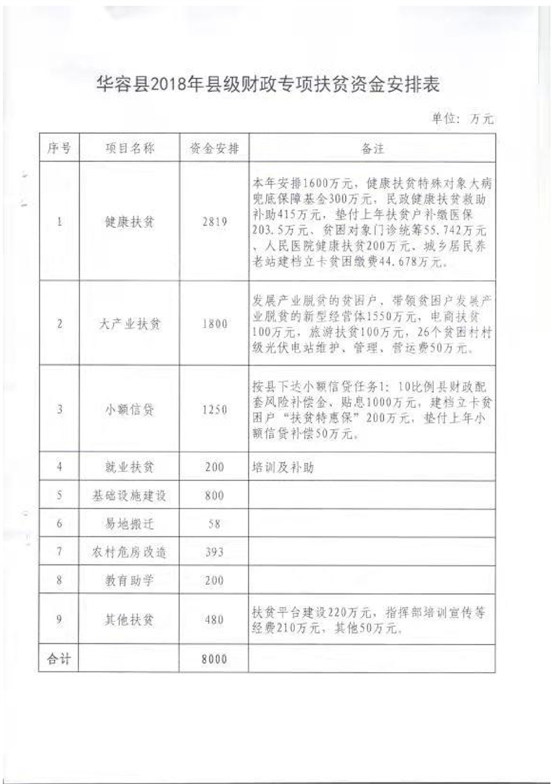 华财函[2018]4号华容县财政局专项扶贫资金预算安排情况