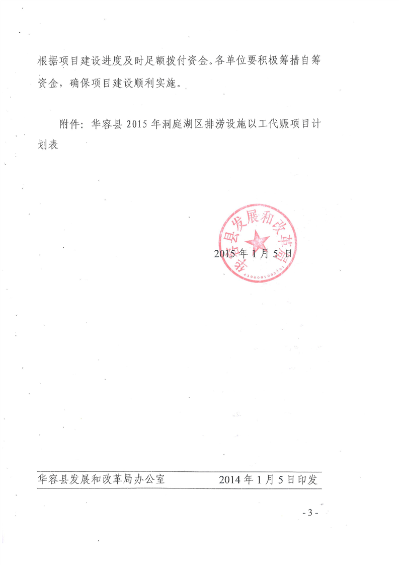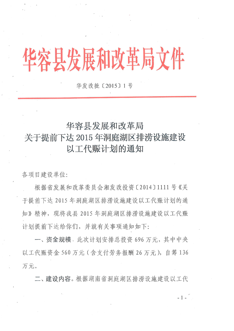 关于提前下达2015年洞庭湖区排涝设施建设以工代赈计划的通知-560万