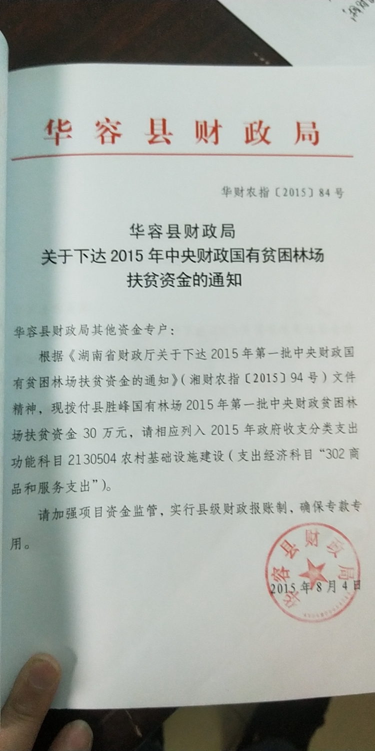 2015年关于下达中央财政国有贫困林场扶贫资金的通知-30万