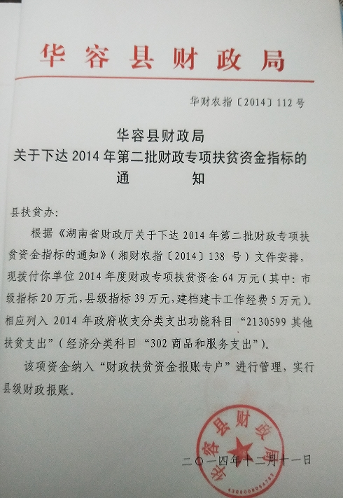 华容县财政局关于下达2014年第二批财政专项资金指标的通知