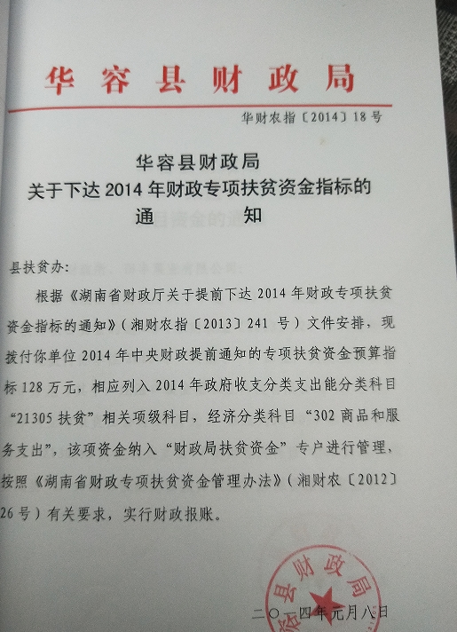 华容县财政局关于下达2014年财政专项扶贫资金指标的通知