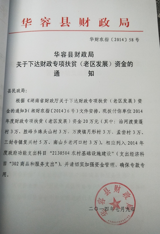 华容县财政局关于下达财政专项扶贫(老区发展)资金的通知