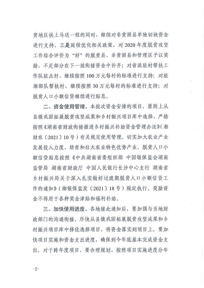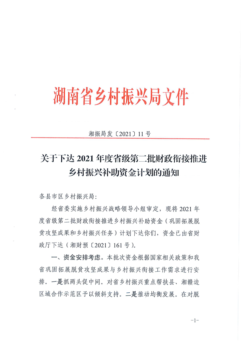 关于下达2021年度省级第二批财政衔接推进乡村振兴补助资金计划的通知