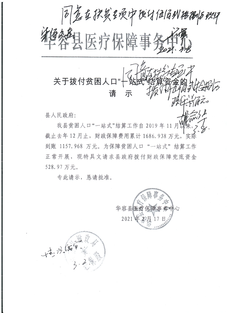 县医疗保障事务中心2020年11-12月一站式结算资金