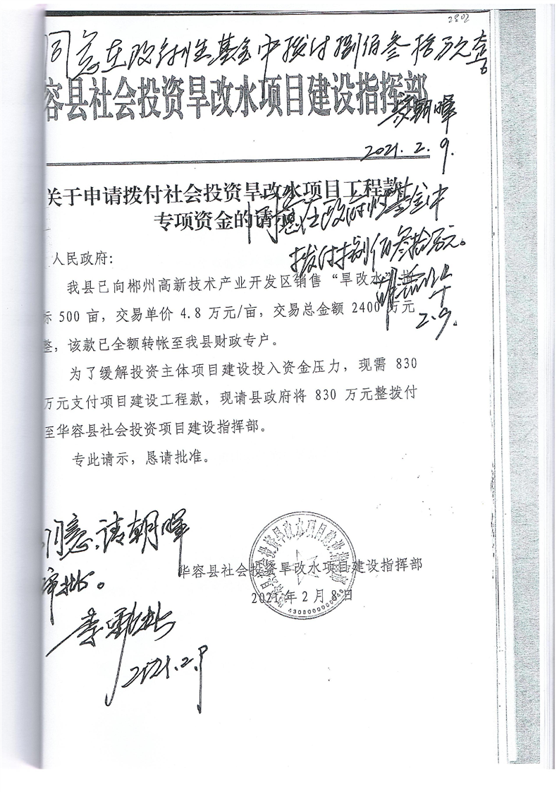 关于申请拨付社会投资旱改水项目工程款专项资金的请示
