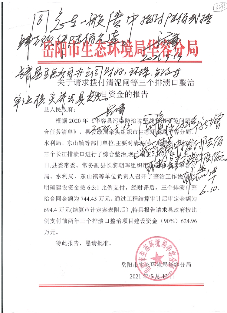 2021年县级投入排渍口整治项目资金624.96万