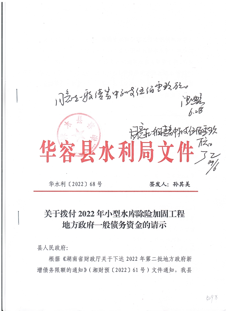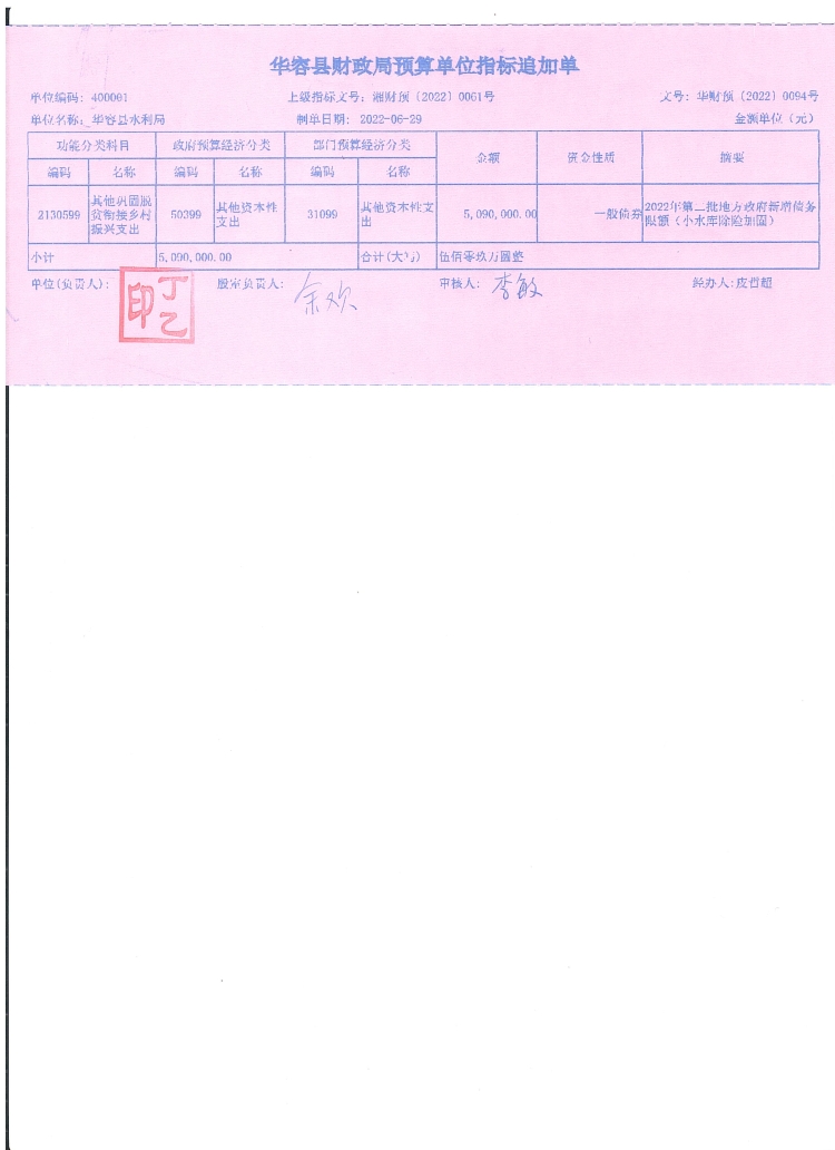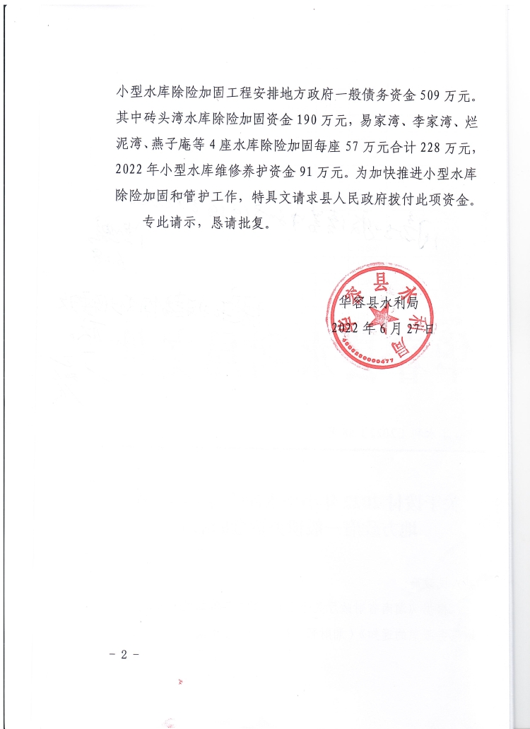2022年华容县小型水库除险加固工程资金509万(县级)