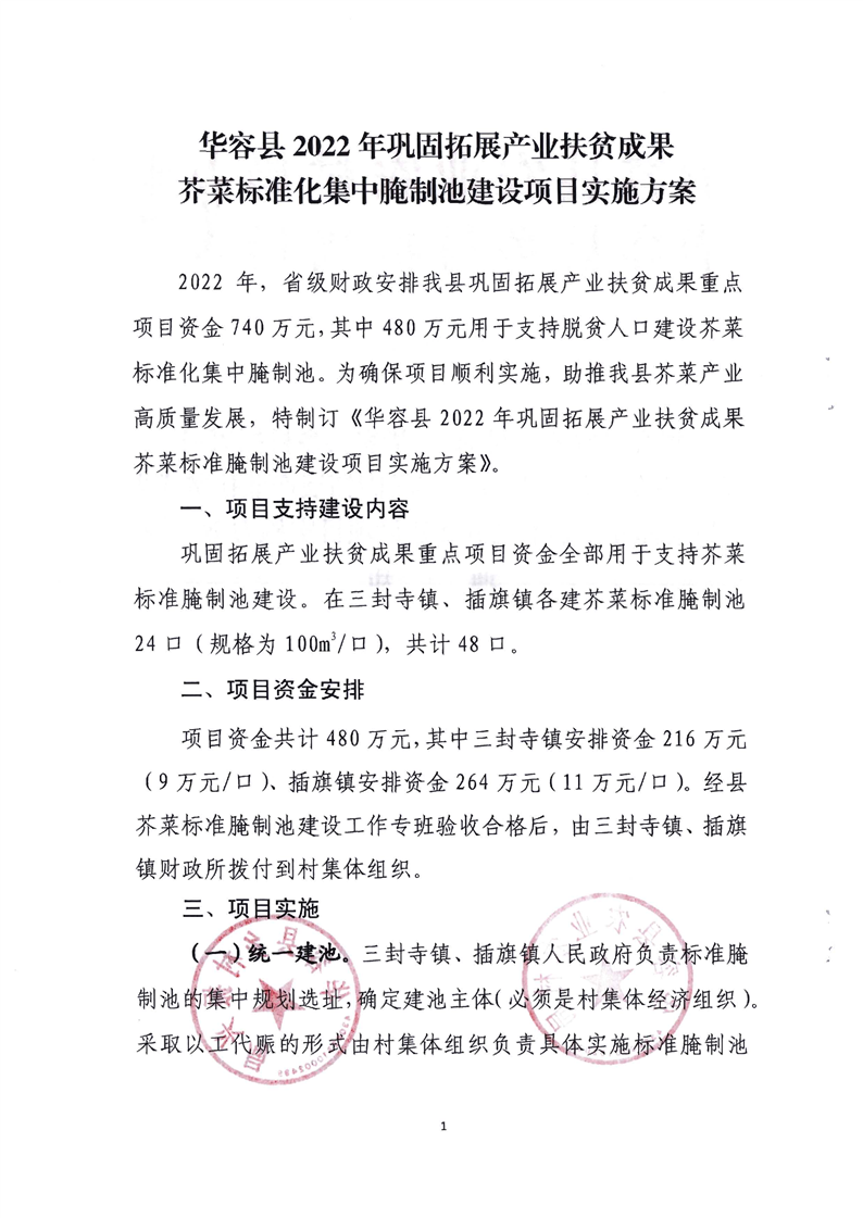 关于印发《华容县2022年巩固拓展产业扶贫成果芥菜标准化集中腌制池建设项目实施方案》的通知-480万