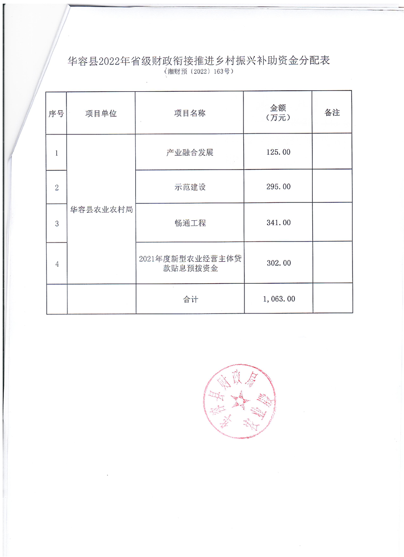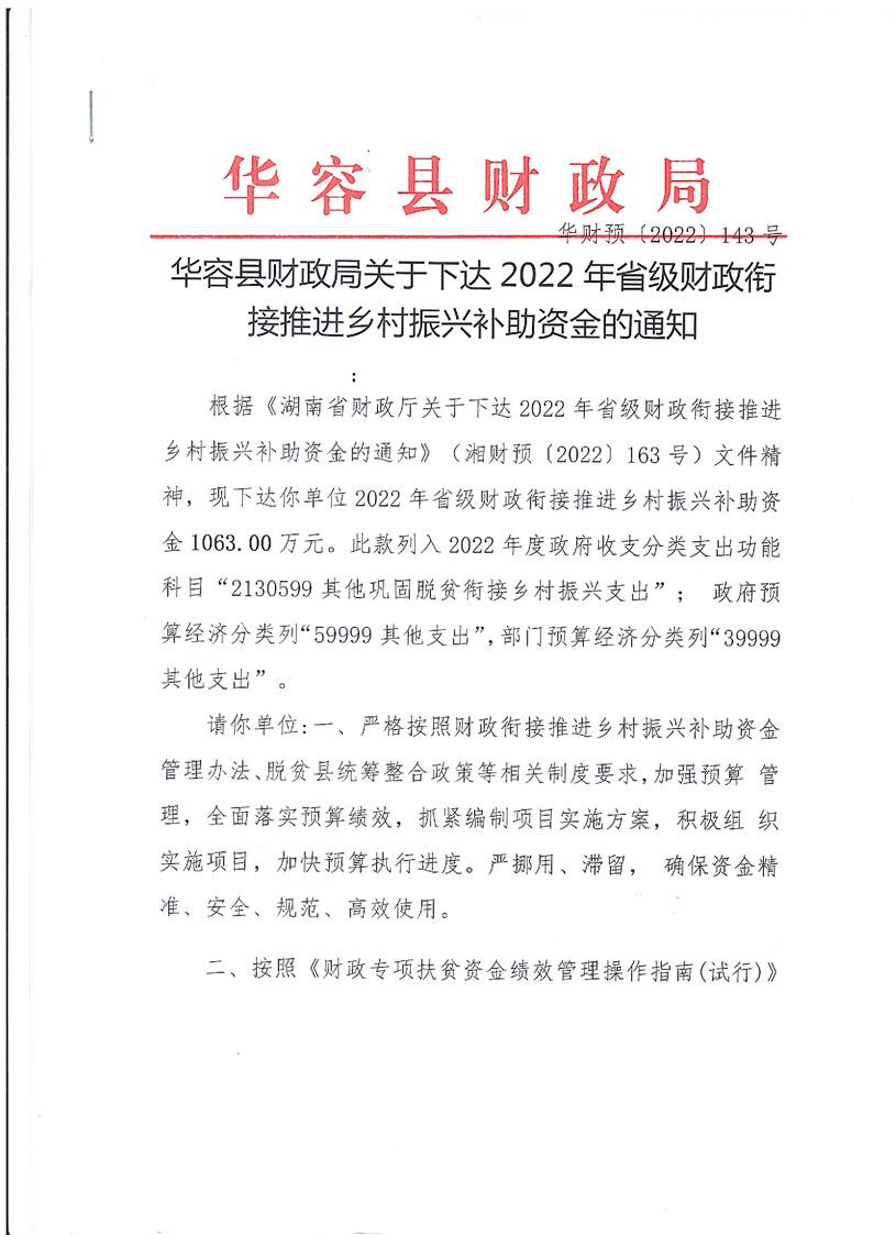 关于下达2022年度省级财政衔接推进乡村振兴补助资金安排计划的通知-1063万