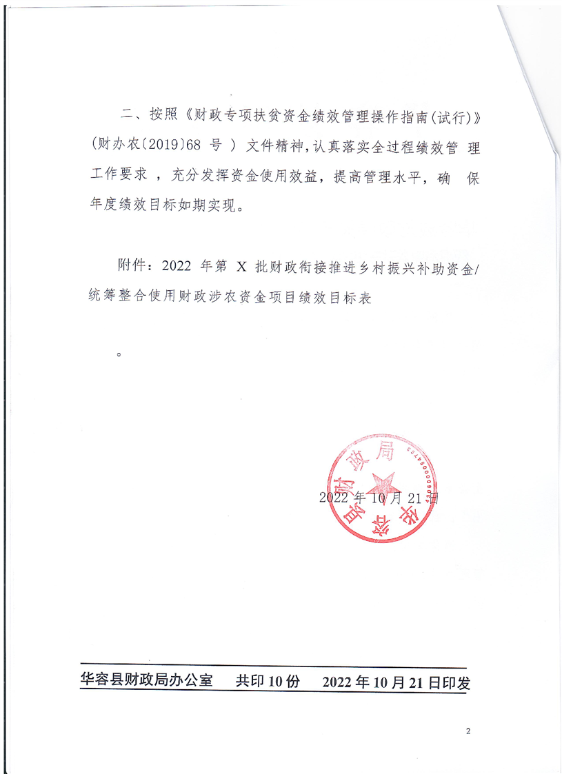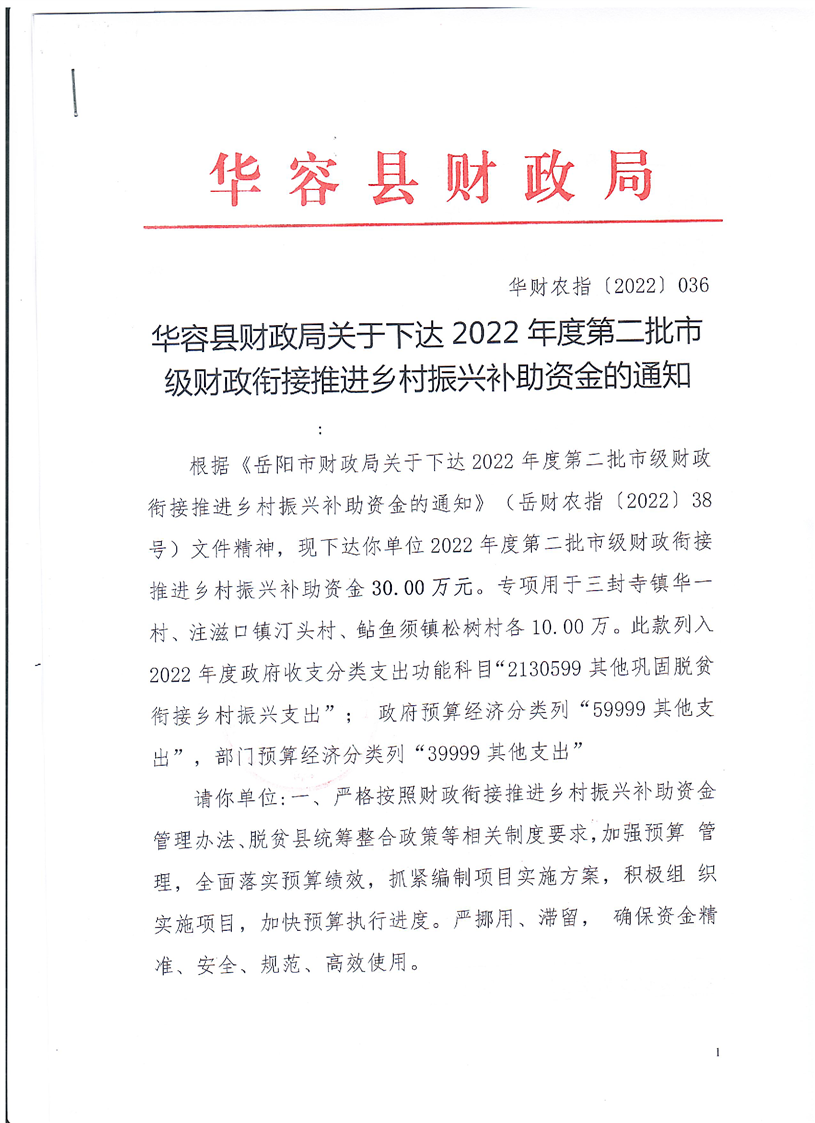 关于下达2022年度第二批市级财政衔接推进乡村振兴补助资金的通知-30万