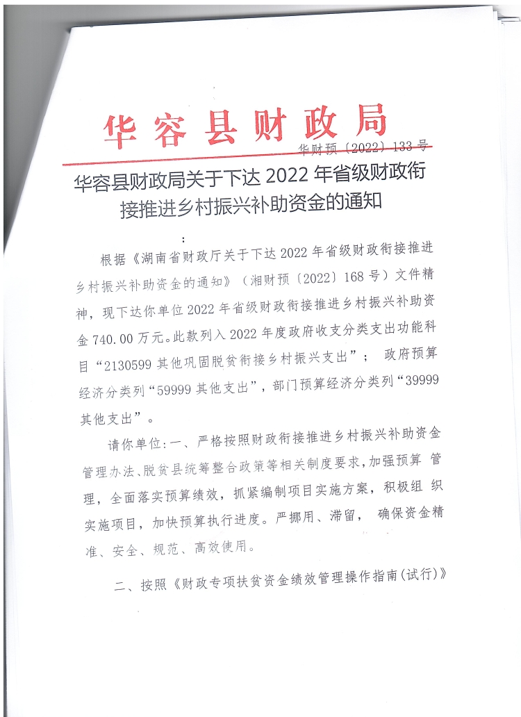 关于下达2022年省级财政衔接推进乡村振兴补助资金的通知(260万重点项目资金)