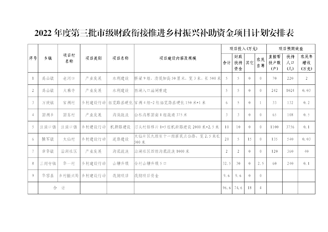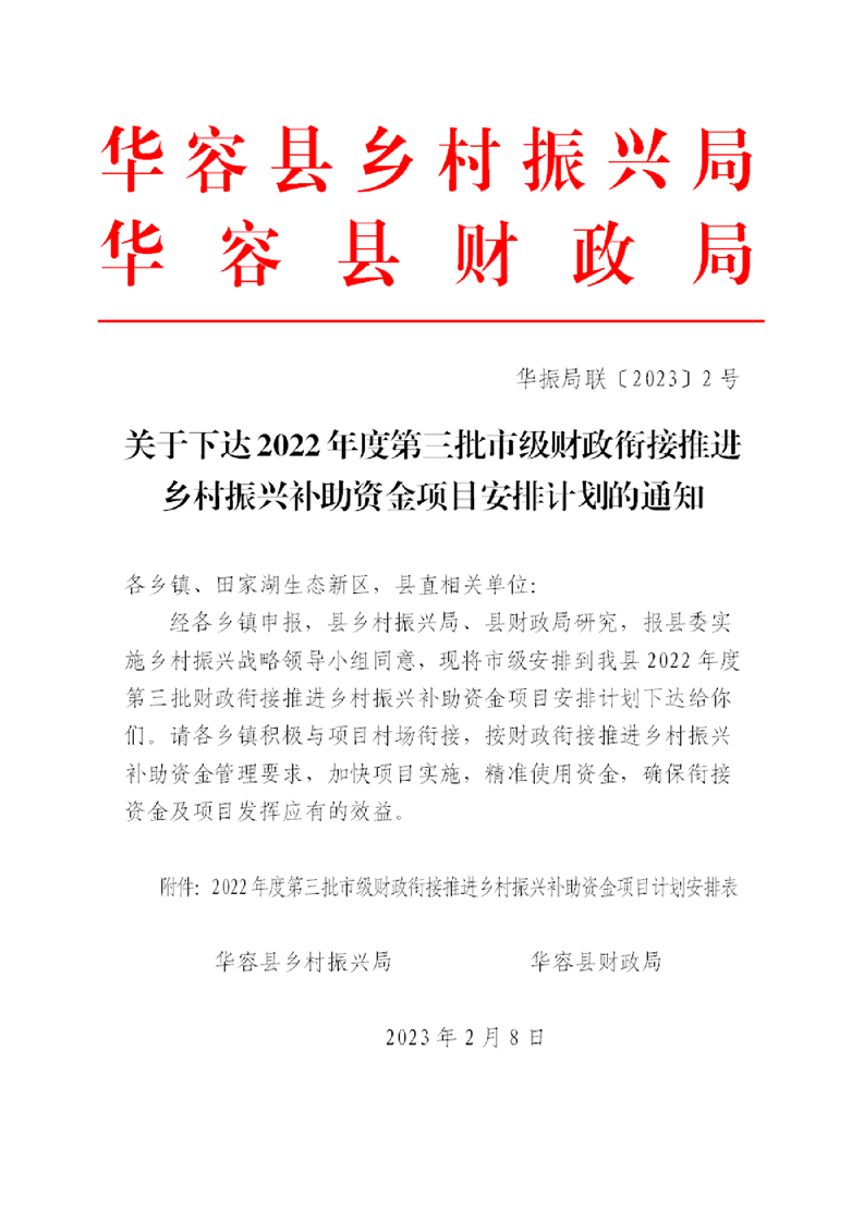 关于下达2022年度第三批市级财政衔接推进乡村振兴补助资金项目安排计划的通知