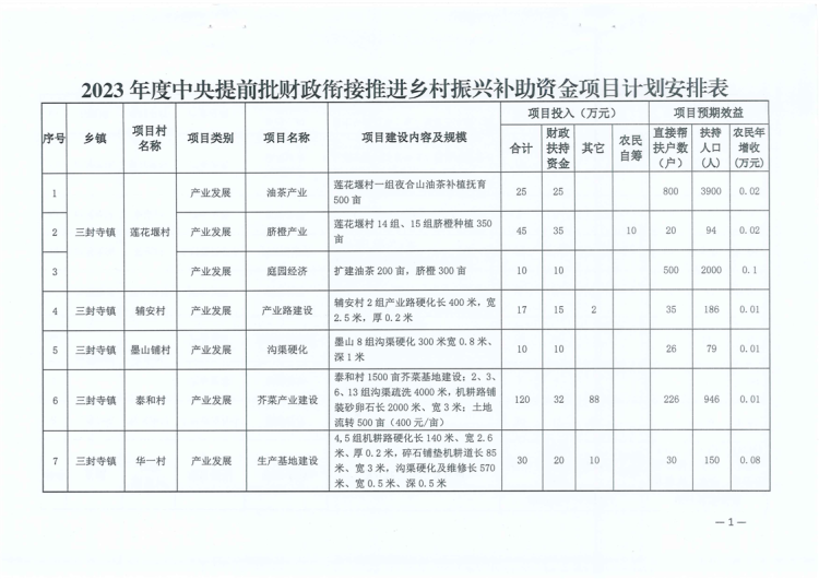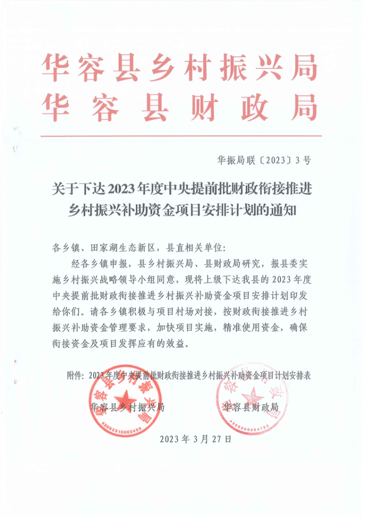 华振局联〔2023〕3号-2023年度中央提前批财政衔接推进乡村振兴补助资金项目安排表-1937万