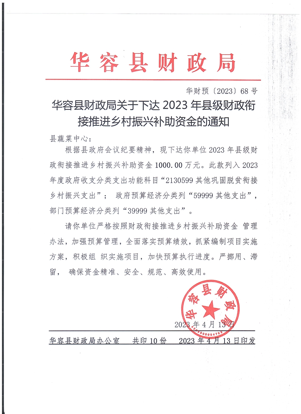 (县级)华容县2023年芥菜原料标准腌制池建设奖补资金1000万