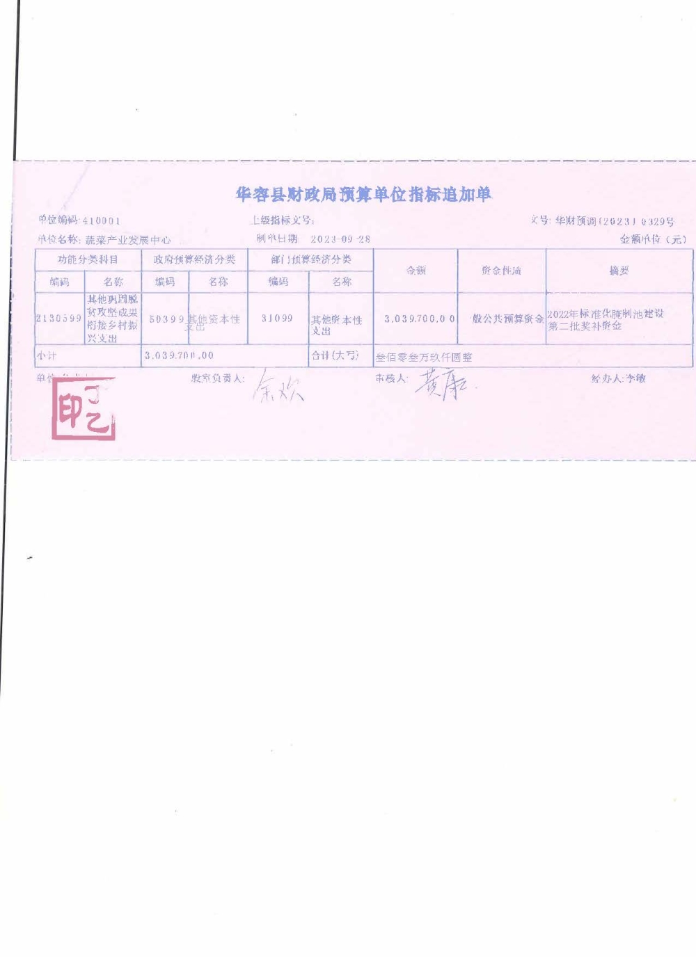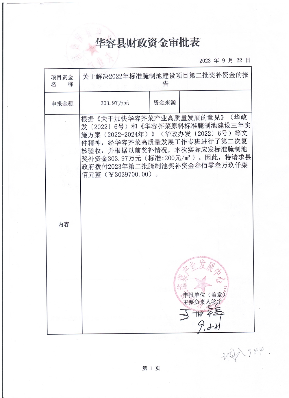(县级303.97万)2023年华容县县级主导产业芥菜腌制池奖补资金