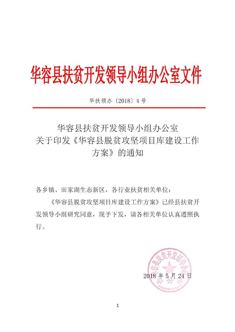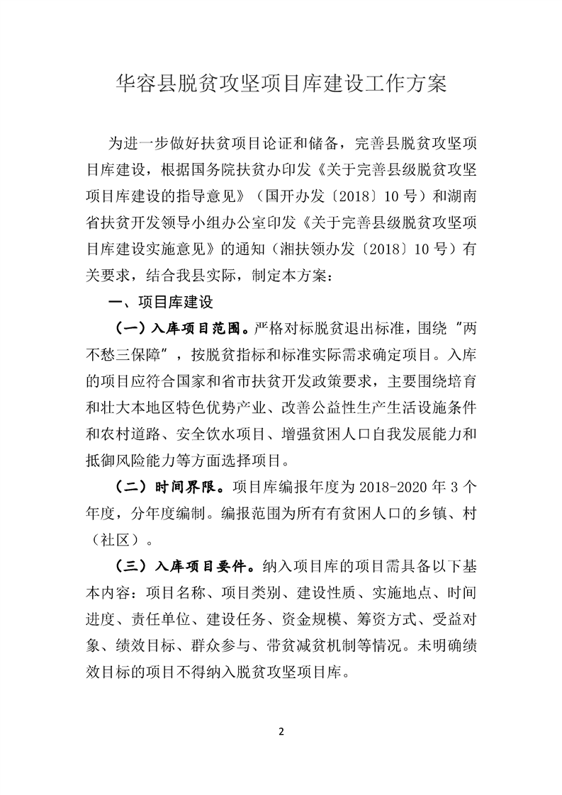 关于印发《华容县脱贫攻坚项目库建设工作方案》的通知