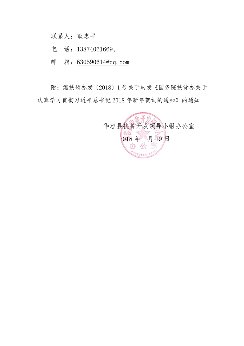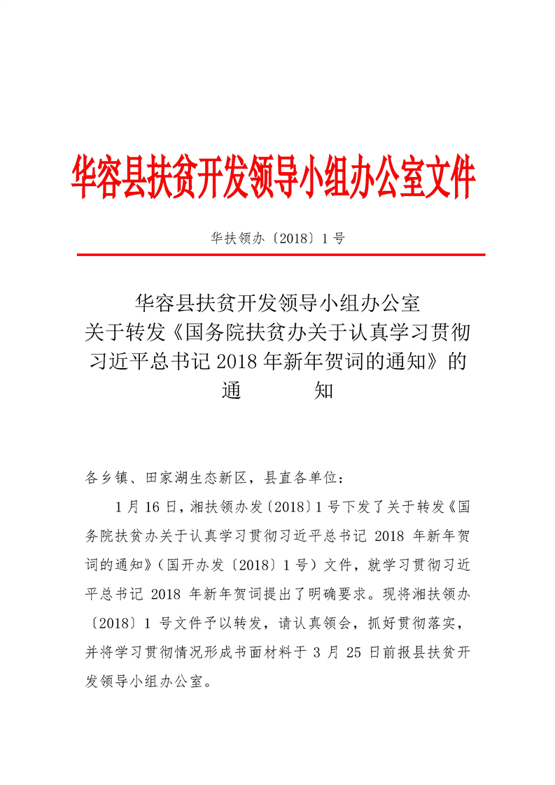 关于转发《国务院扶贫办关于认真学习贯彻习近平总书记2018年新年贺词的通知》的通知