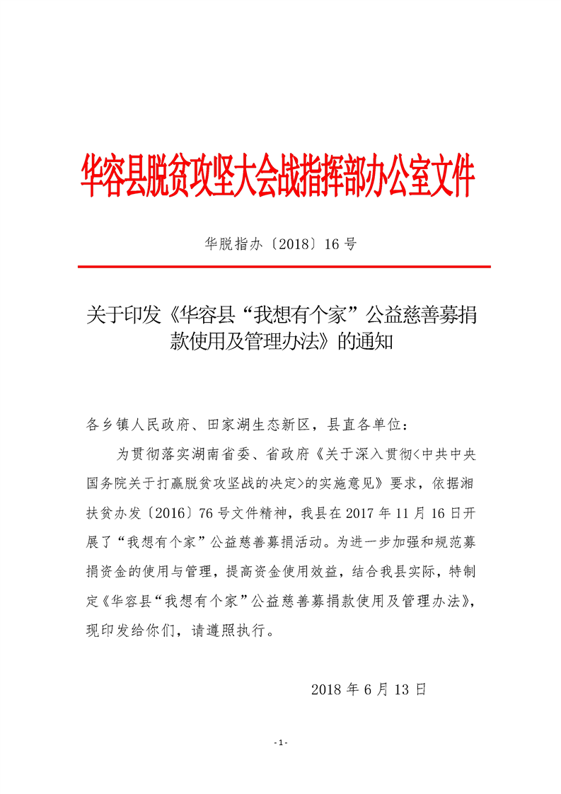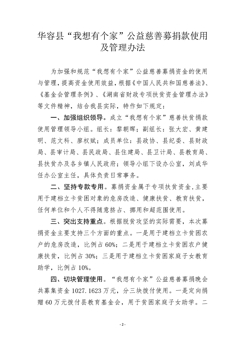 华容县“我想有个家”公益慈善募捐款使用及管理办法