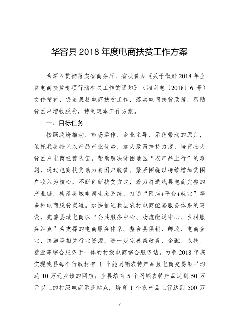华容县2018年度电商扶贫工作方案