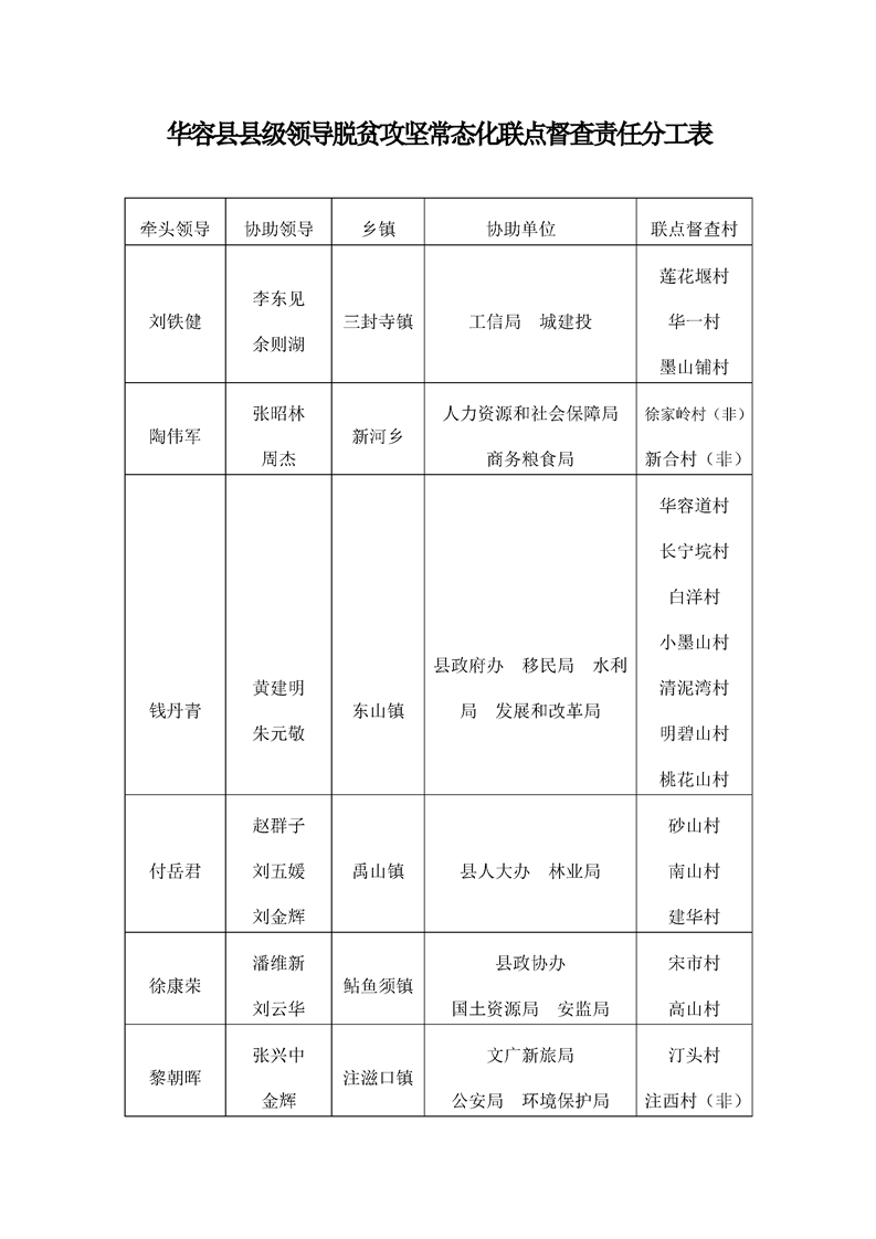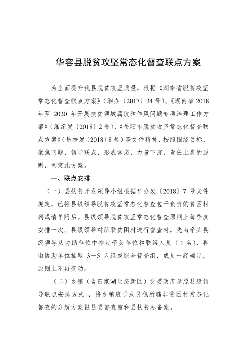 关于印发《华容县脱贫攻坚常态化督查联点方案》的通知