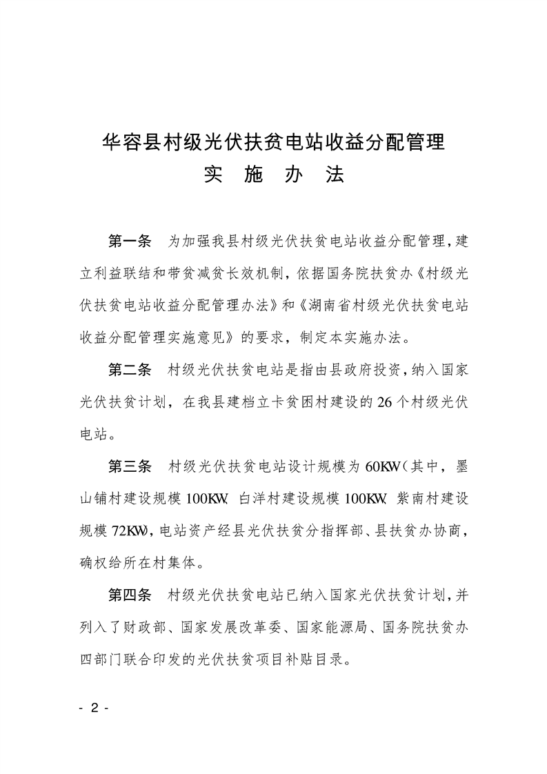 华容县村级光伏扶贫电站收益分配管理实施办法