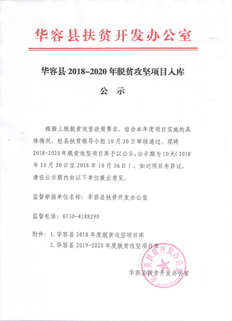 华容县2018年脱贫攻坚项目入库申报表
