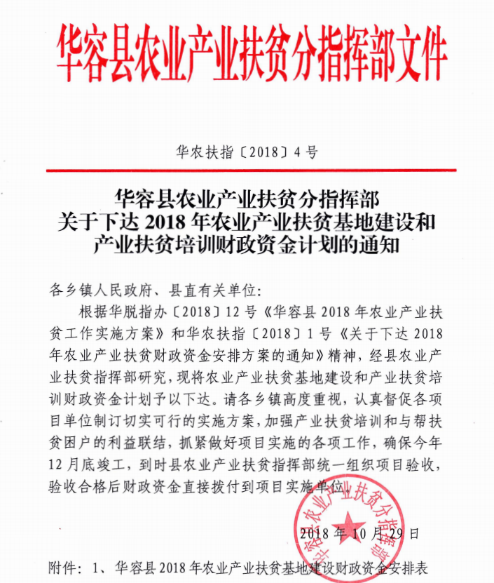 关于下达2018年农业产业扶贫基地建设和产业扶贫培训财政资金计划的通知