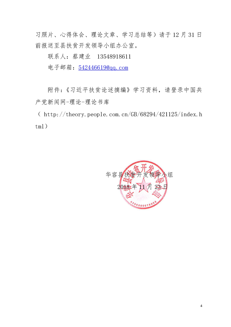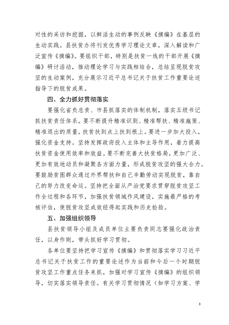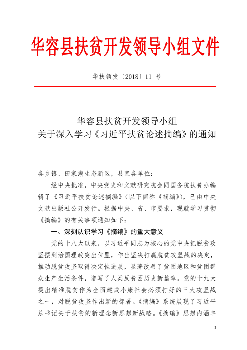 华容县扶贫开发领导小组关于深入学习《习近平扶贫论述摘编》的通知