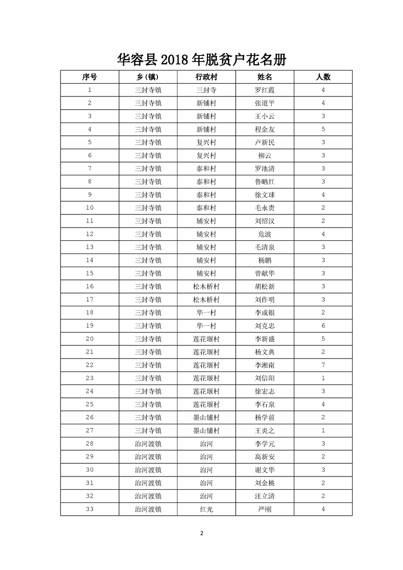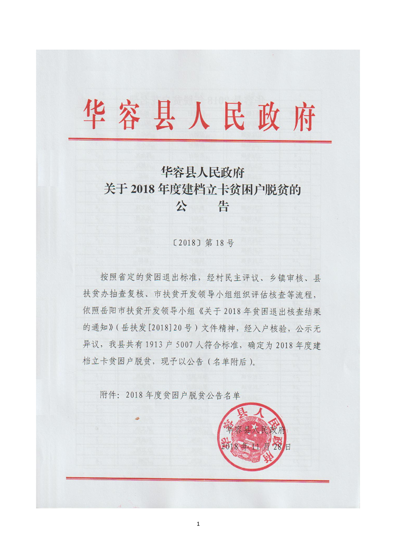 华容县人民政府关于2018年度建档立卡贫困户脱贫的公告