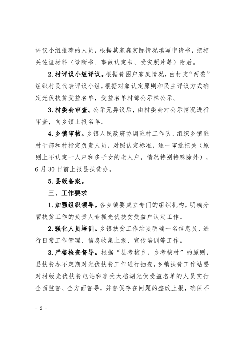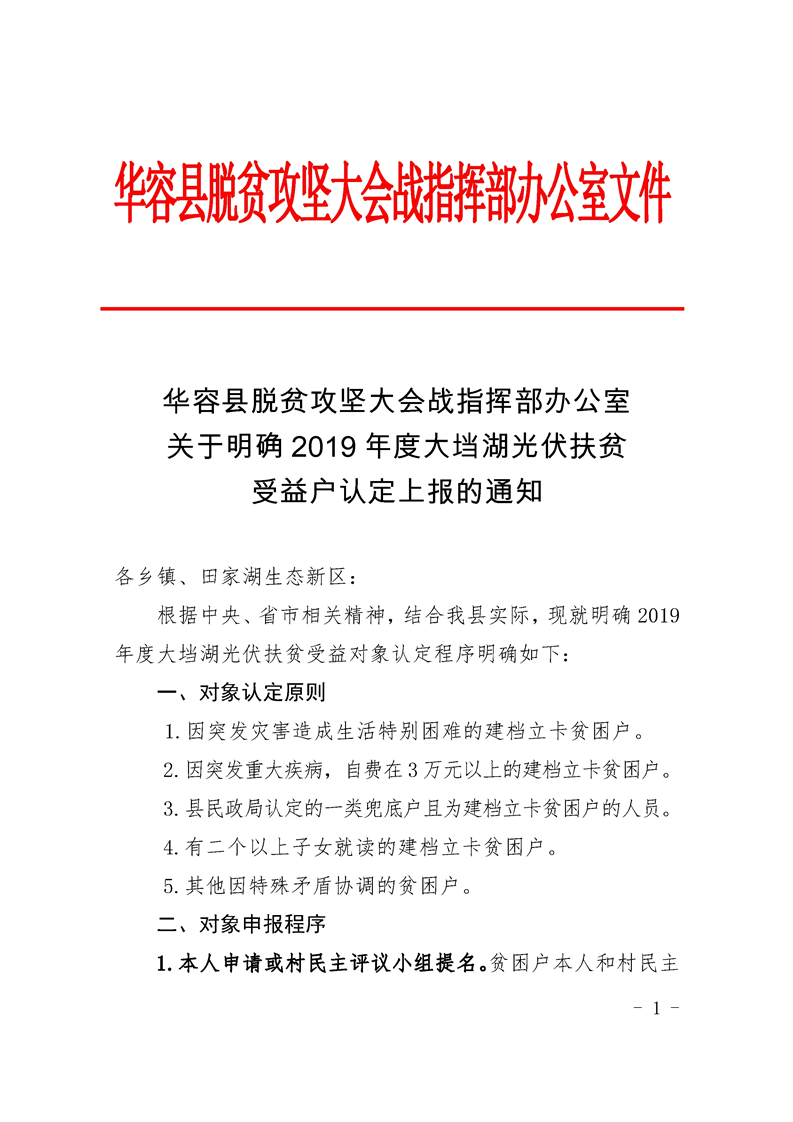 关于明确2019年度大垱湖光伏扶贫受益户认定上报的通知