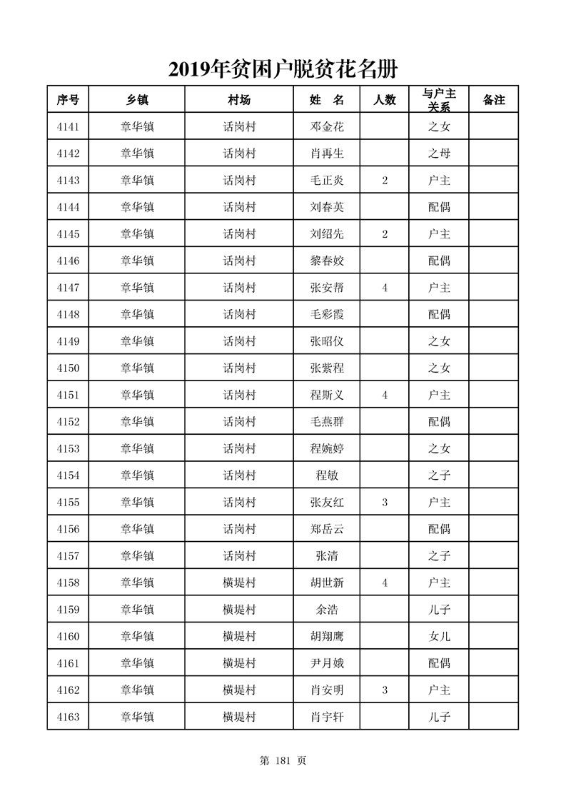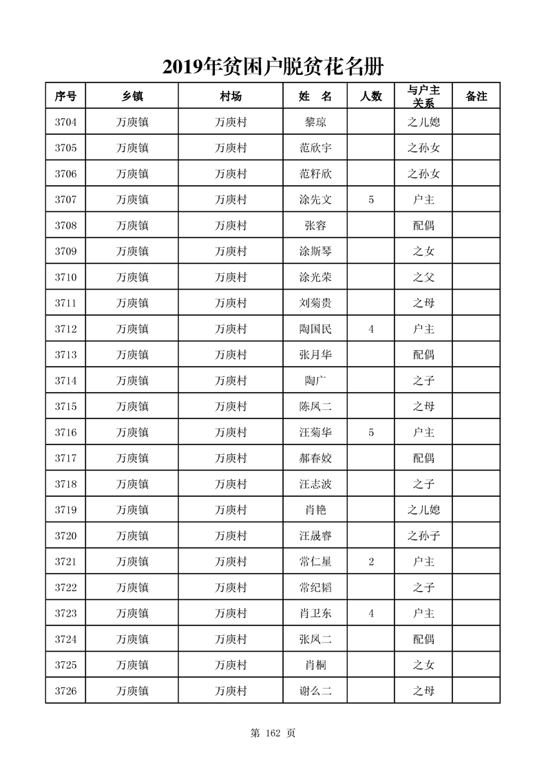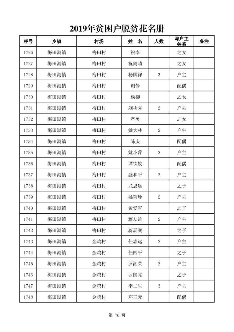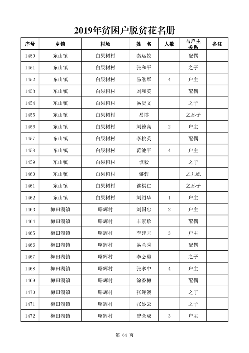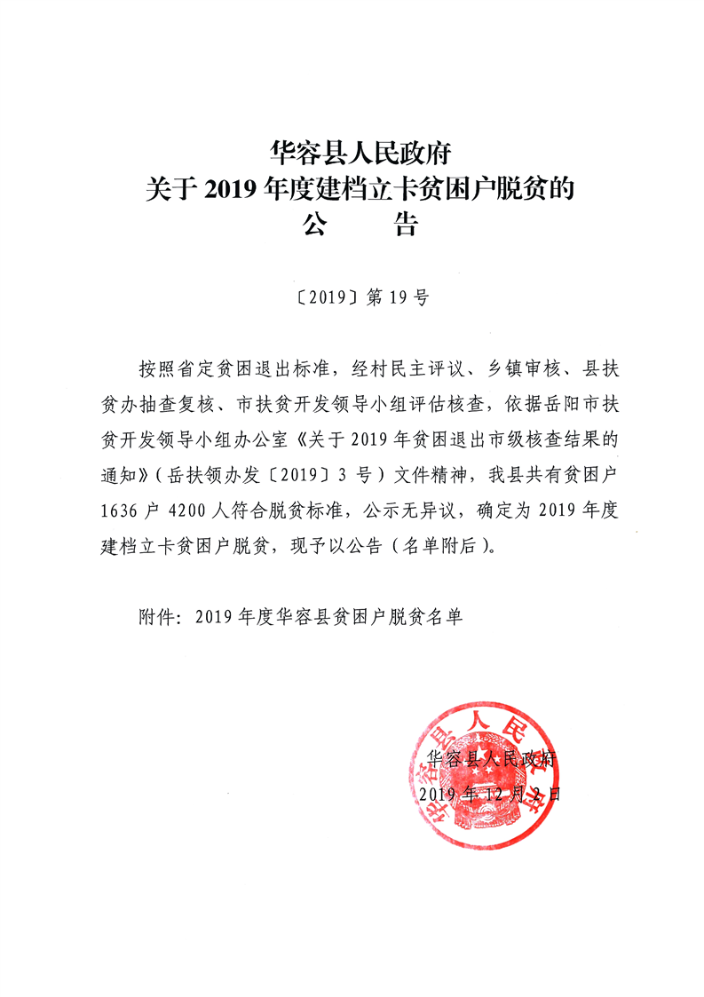 华容县人民政府关于2019年度建档立卡贫困户脱贫的公告