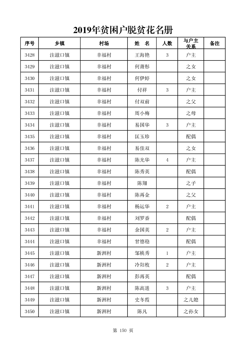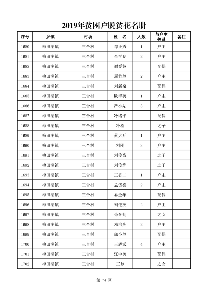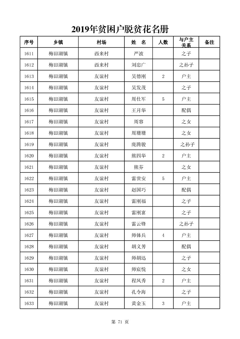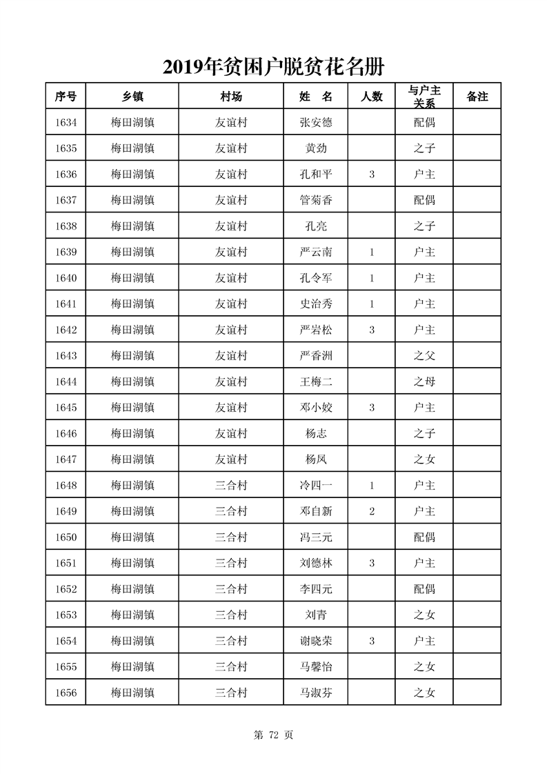 华容县人民政府关于2019年度建档立卡贫困户脱贫的公告