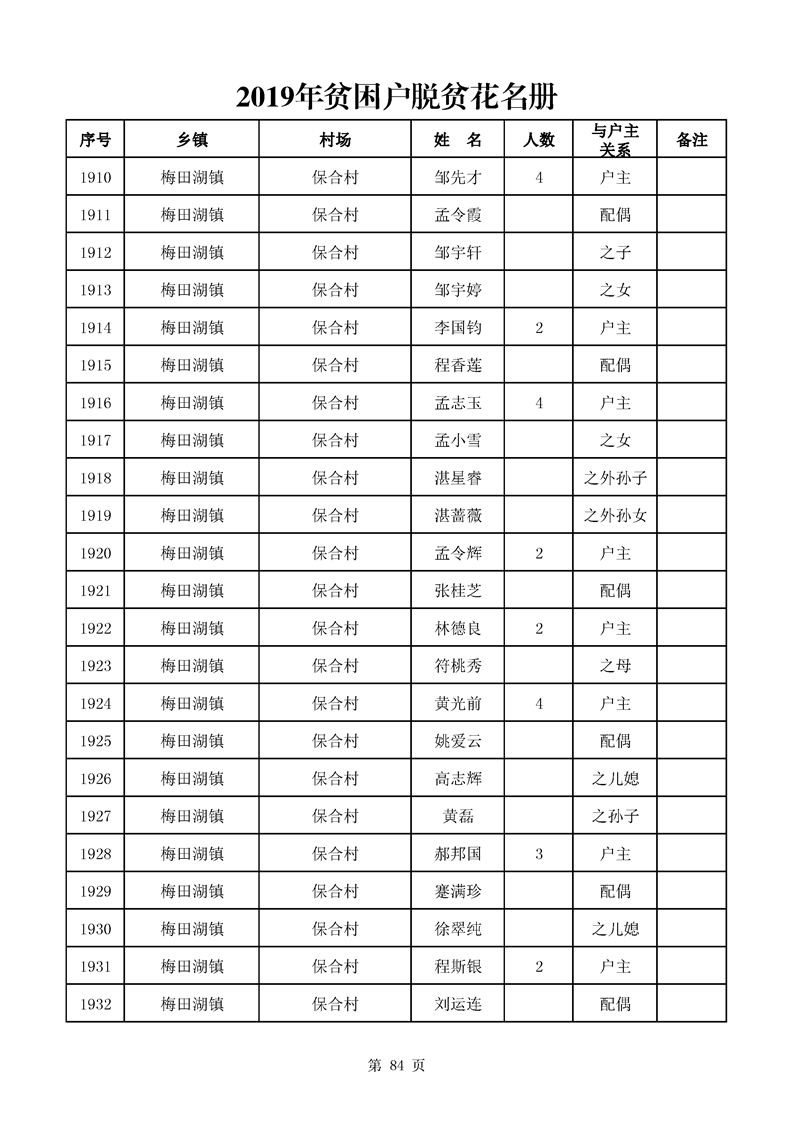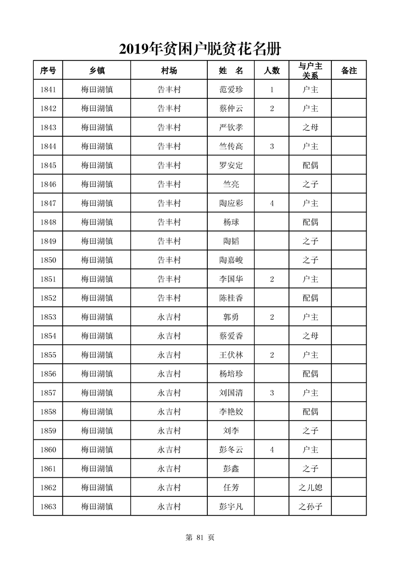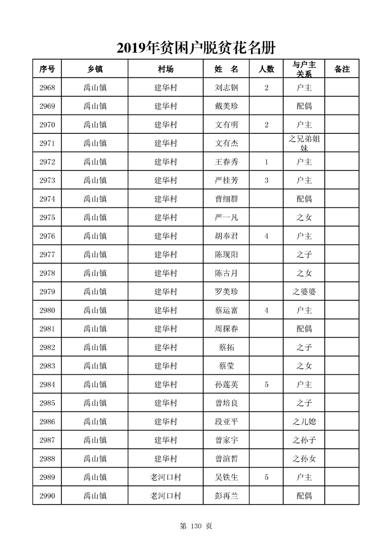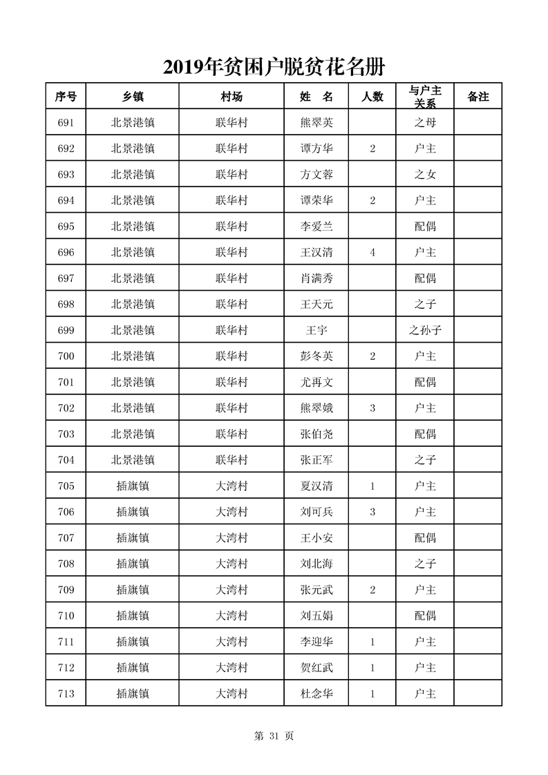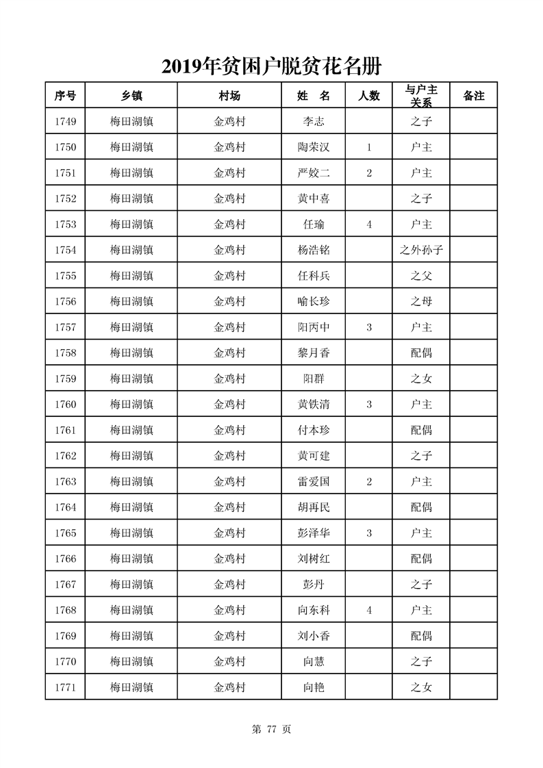 华容县人民政府关于2019年度建档立卡贫困户脱贫的公告