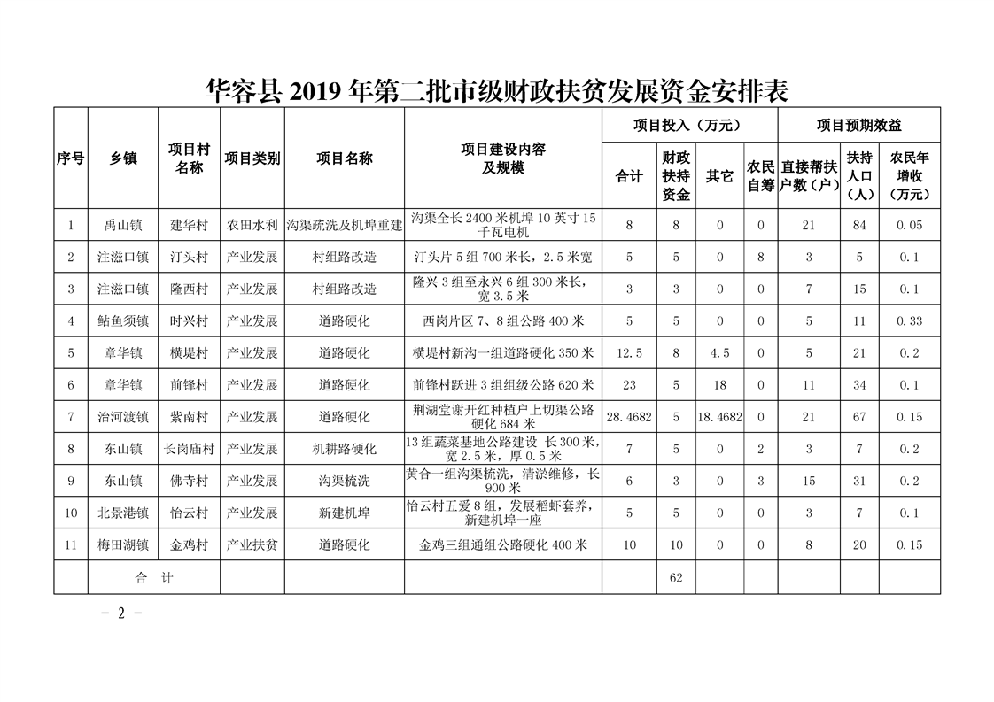 华容县2019年第二批市级财政扶贫发展资金安排表