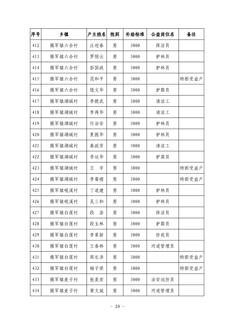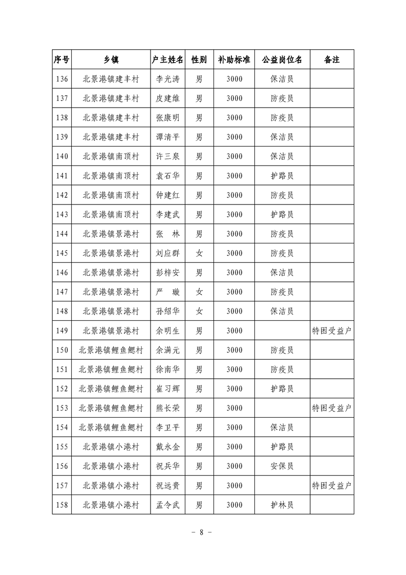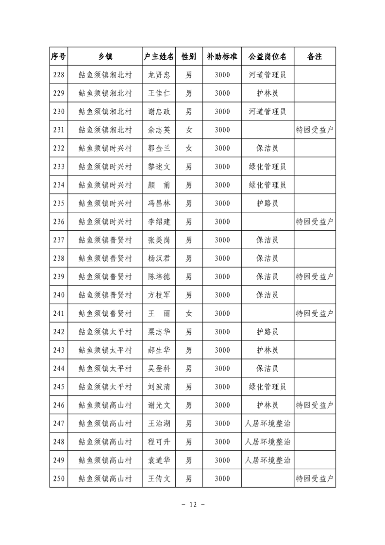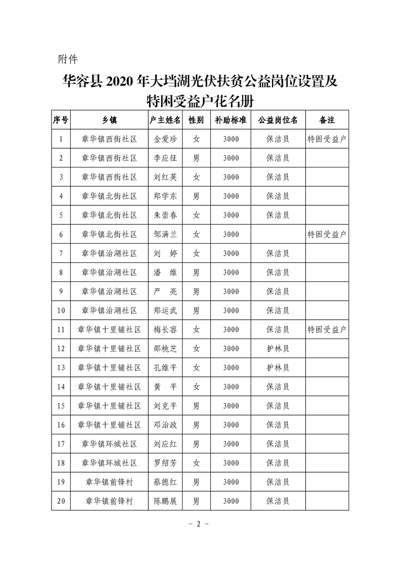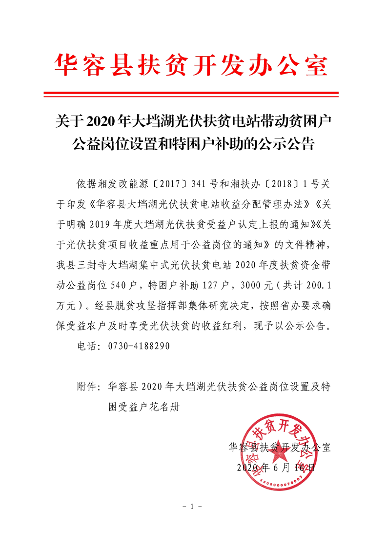 2020年大垱湖光伏扶贫电站带动贫困户公益岗位和特困户补助的公示公告