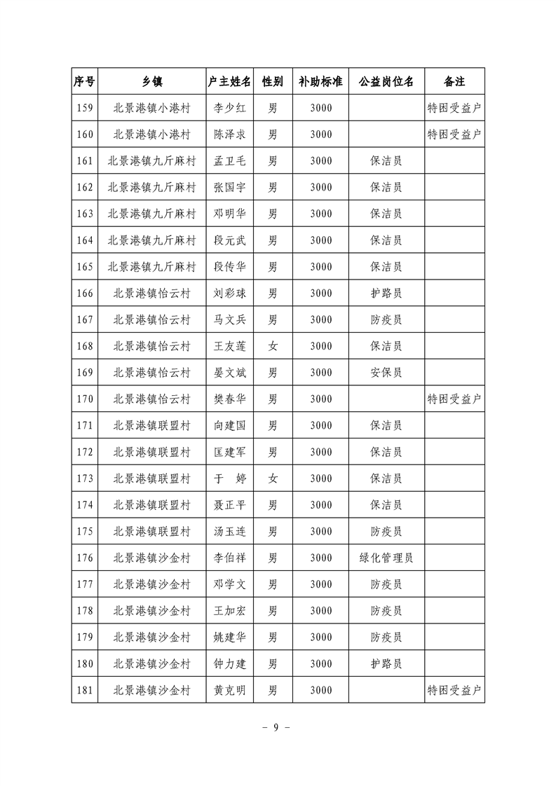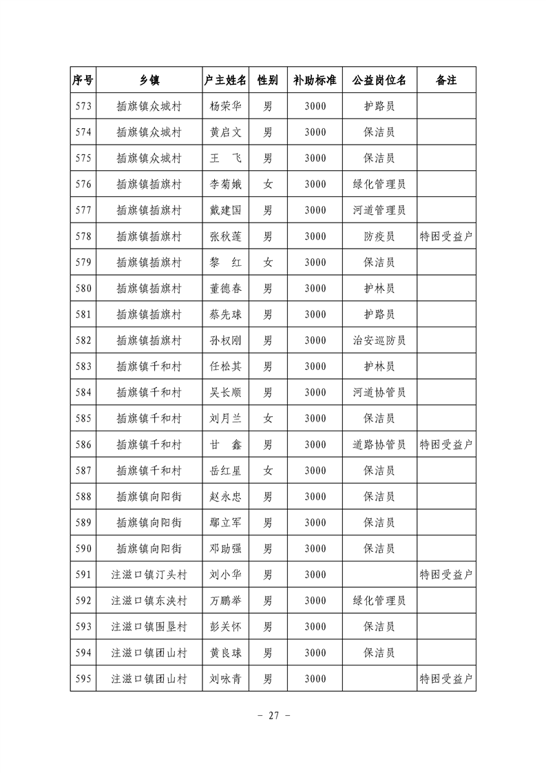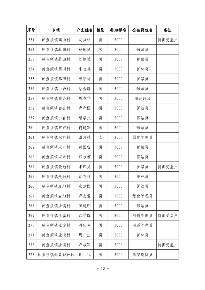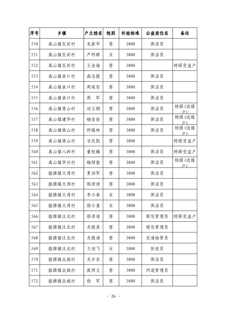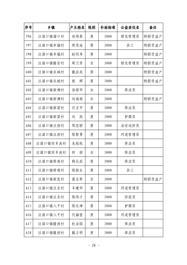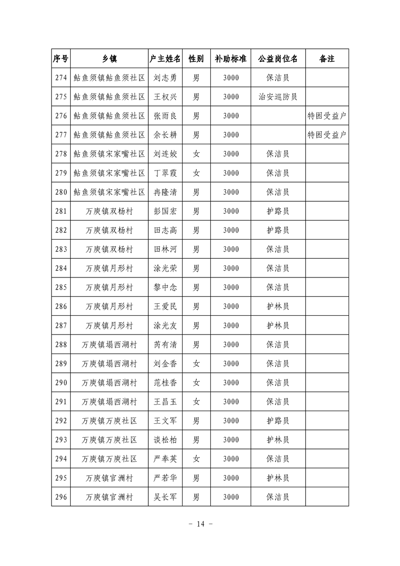 2020年大垱湖光伏扶贫电站带动贫困户公益岗位和特困户补助的公示公告