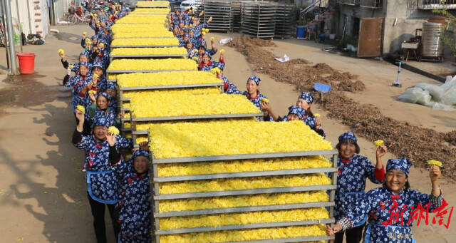 近年来,华容县保丰中药材种植专业合作社采取“企业+合作社+基地+农户”的模式,种植金丝皇菊、白芷、前胡等多种中药材,做大做强中药材产业。其中,金丝皇菊生产基地已达1000余亩,每亩产量可达2000至3000斤,辐射带动周边400余户农户就近就业增收。菊花产业的蓬勃发展不仅富了村民的口袋,也带动了乡村旅游,为乡村振兴注入了新的活力。