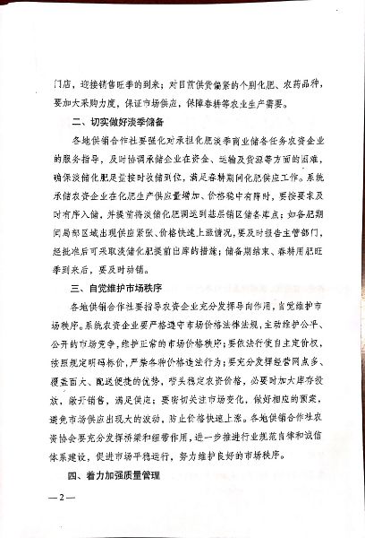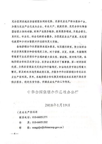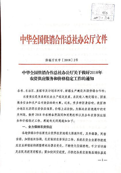 现将中华全国供销合作总社办公厅《关于做好2018年农资供应服务和价格稳定工作的通知》(供销厅农字【2018】2号)转发如下,请各相关单位对照通知精神落实,切实做好2018年农资供应服务和价格稳定工作。
