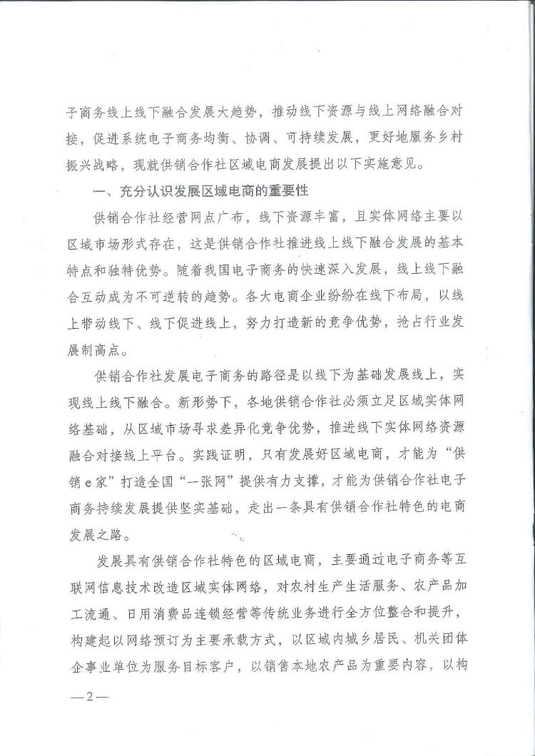 中华全国供销合作总社关于推进区域电商发展的实施意见