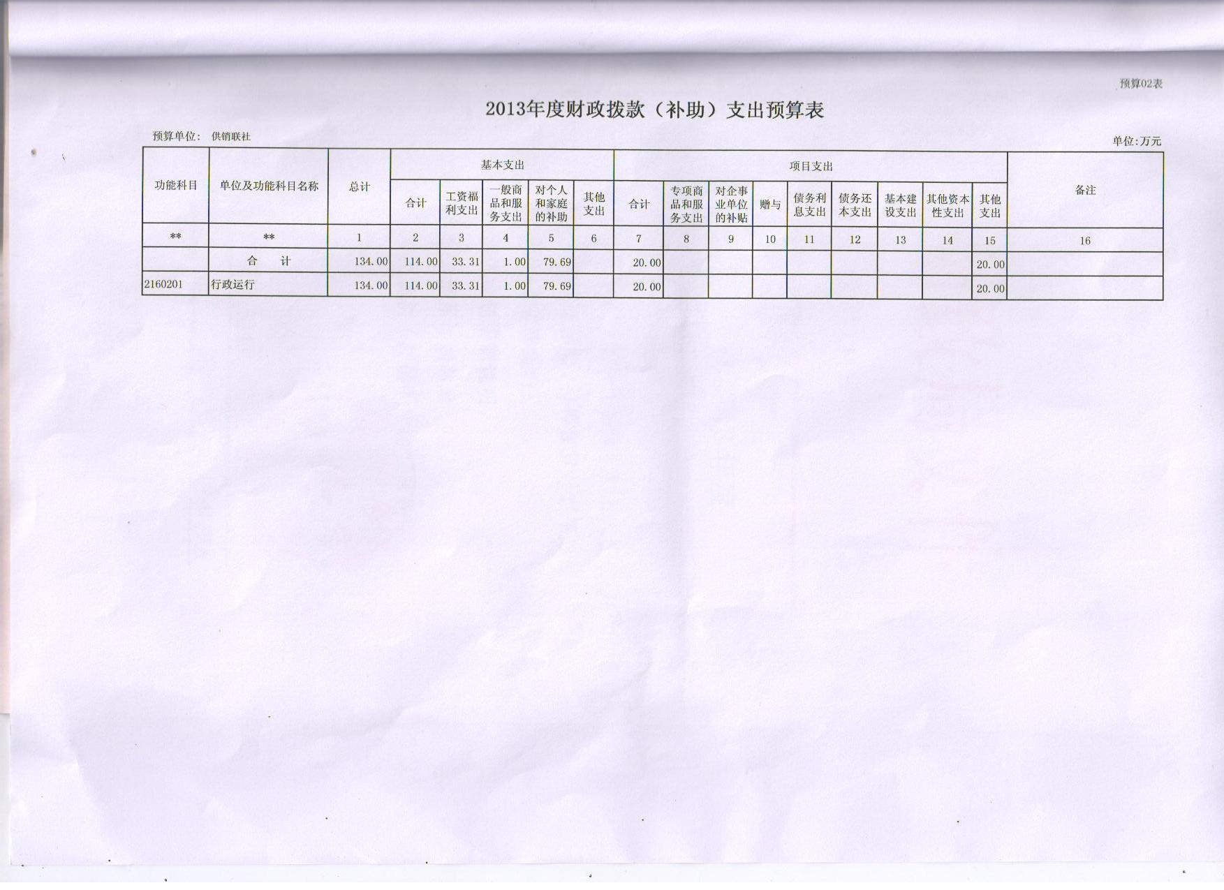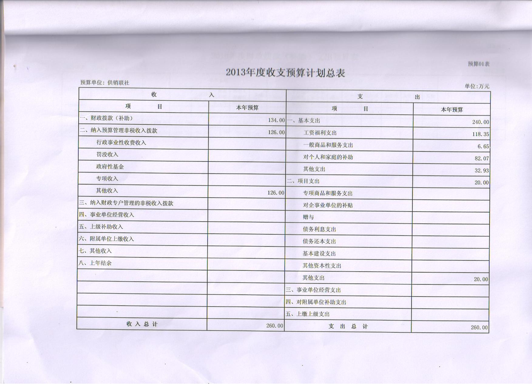 2013年收支预算计划总表
