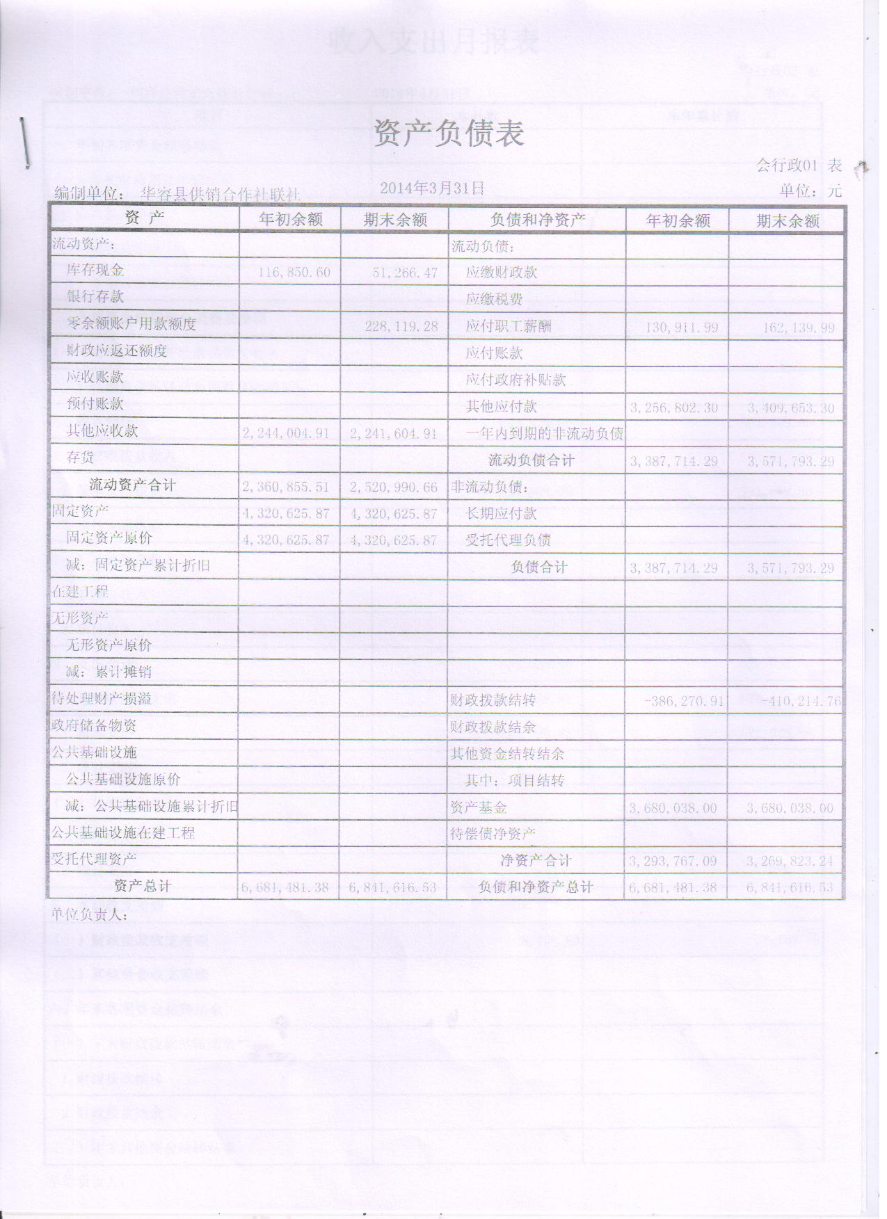 2014年第一季度资产负债表