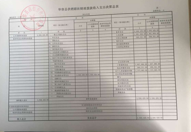 2014年度华容县供销联社财政拨款收入支出决算总表