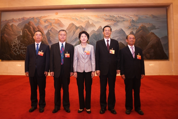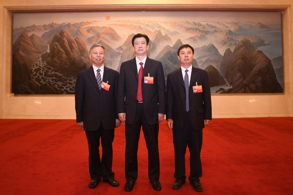 图为中华全国供销合作总社第七届监事会主任蔡振红(中),副主任宗义(左三)、原梅生(左一)。