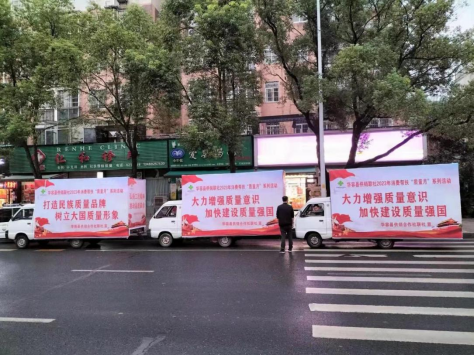 9月6日以来,华容县社利用多种宣传方式让质量知识进机关、进社区、进农村。一方面通过在我县各大宾馆、商场、超市等人流密集处的电子显示屏循环滚动“质量月”活动口号,安排宣传车在我县重要路段进行巡回宣传,进一步提升群众质量监督意识;另一方面在我县各大农资店及村级供销社摆放宣传展架,粘贴宣传展板,发放宣传传单,普及质量知识,提升经营主体的质量意识,保障粮食安全和农产品质量安全。