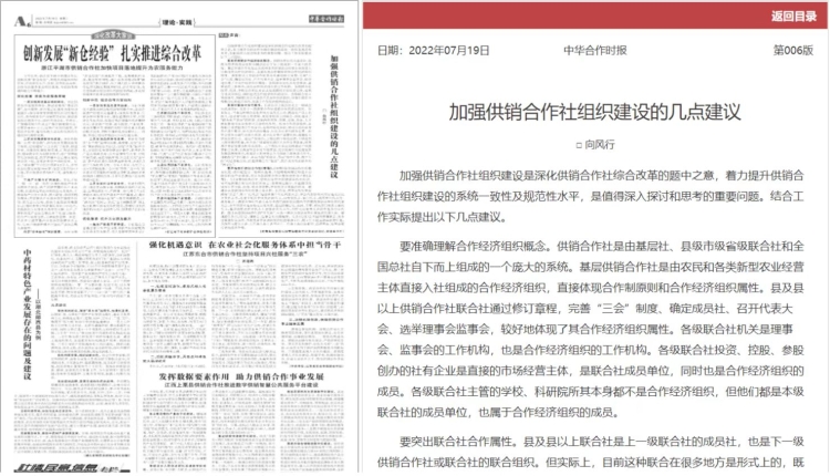 要突出联合社合作属性。县及县以上联合社是上一级联合社的成员社,也是下一级供销合作社或联合社的联合组织。但实际上,目前这种联合在很多地方是形式上的,既没有产权上的投入,也没有行政上的隶属,更没有经营上的联合,因此造成了“联合社不联合”的困局,系统内的网络、资源、设施、资金、人才优势都没有充分发挥出其独特的作用。作为合作经济组织,各级联合社要坚持合作制原则,运用市场化手段,将成员社的社有资产进行整合、社有资本进行融合、社有企业进行联合发展。理事会要充分履行出资人职责,成立社有资产运营机构,组建社有资本投资公司。通过产权联合,上级社向下级社注资,下级社向上级社缴纳股金,社有资产收益按比例注入合作发展基金,统筹用于基层社建设和为农服务。上下级社有企业之间通过产权纽带联合发展,实现省市县乡村五级贯通,充分发挥行业经营优势和集团规模效应,形成强大的市场竞争力和庞大的市场占有率,彻底改变“单打独斗、各自为战”的现状,形成“你中有我、我中有你”的经济联合体,打造供销合作“航母”,真正成为为农服务的“国家队”。